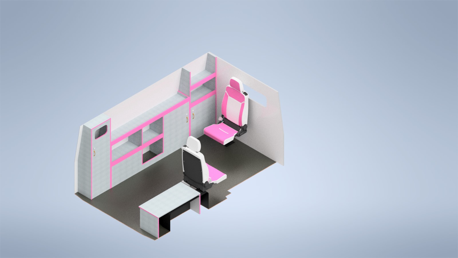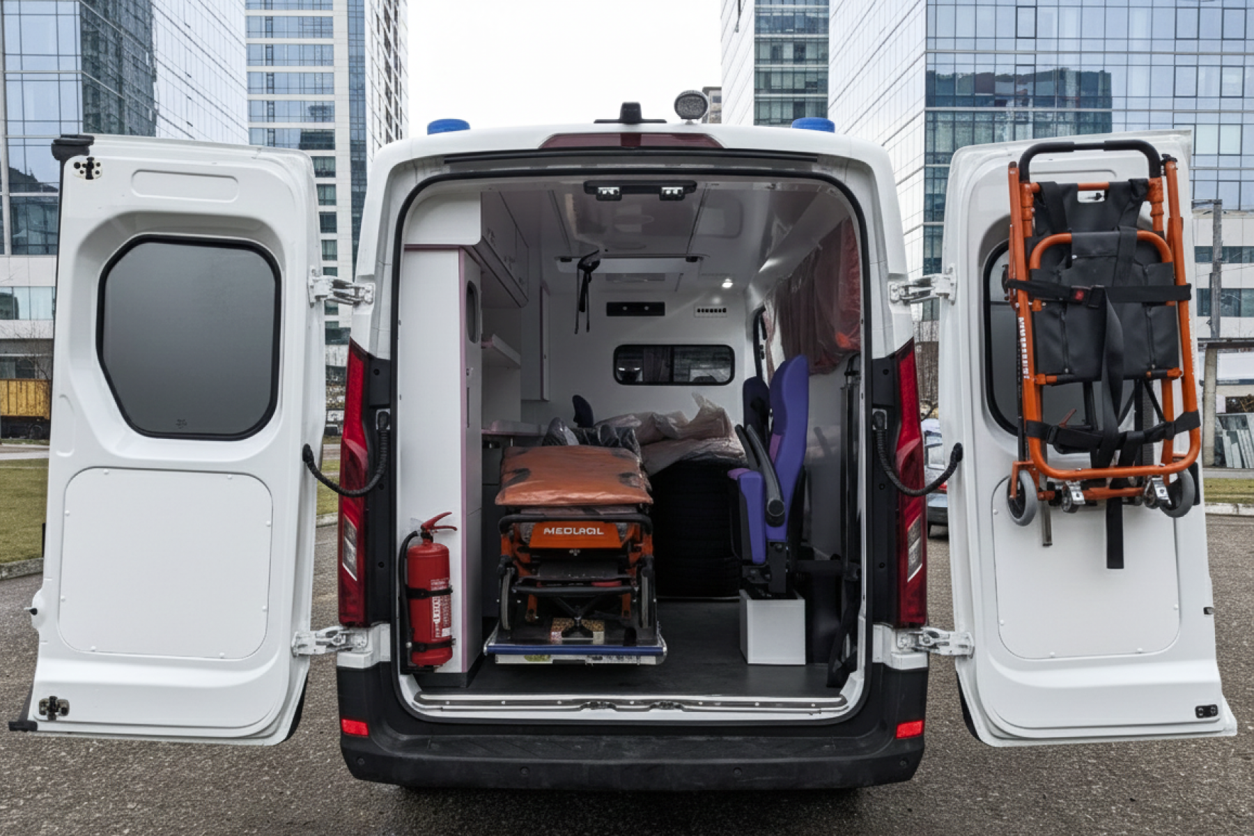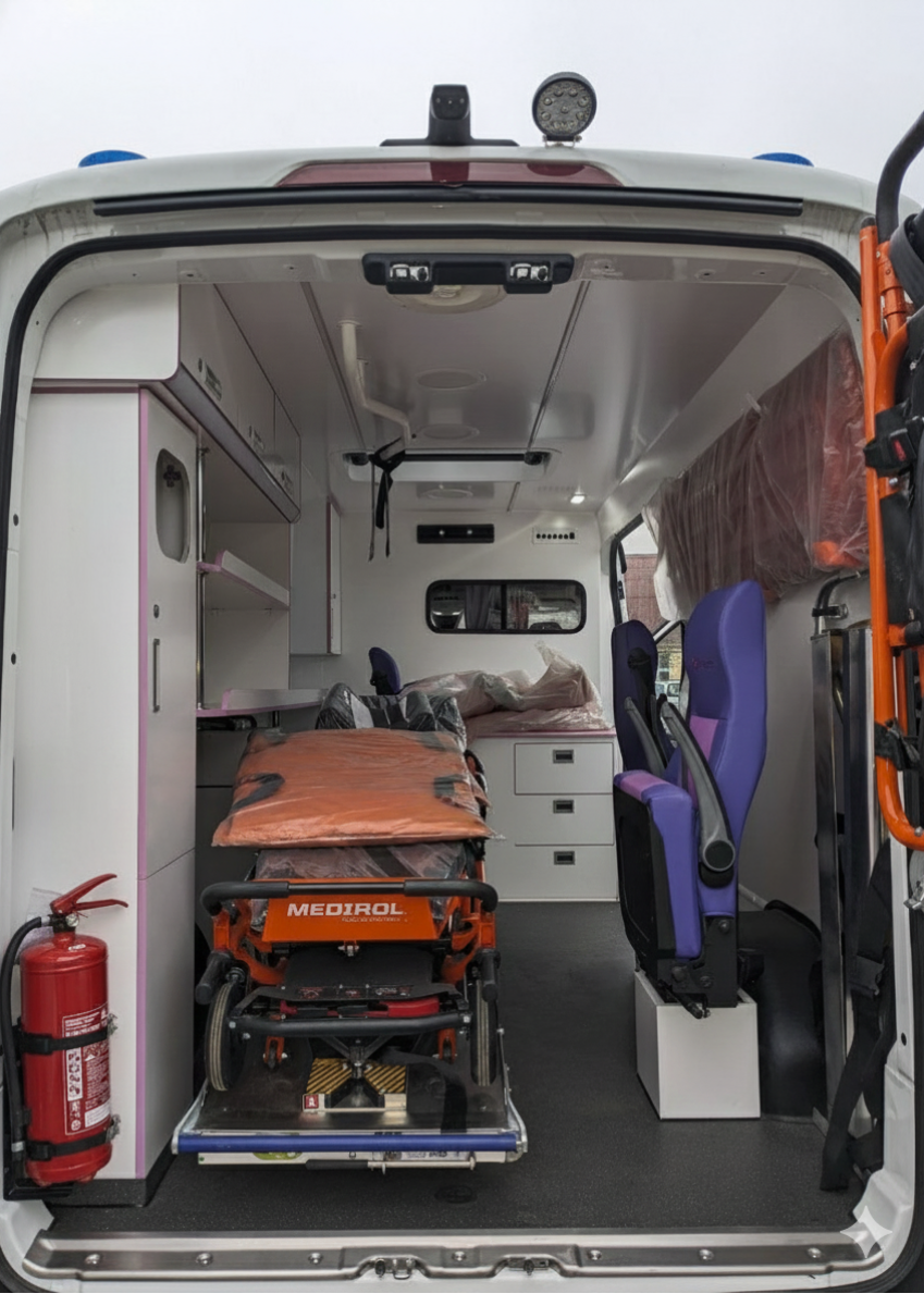 Салон проектируется для безопасной транспортировки пациентов, удобной работы медперсонала, быстрого доступа к оборудованию и эффективного оказания помощи в пути.
